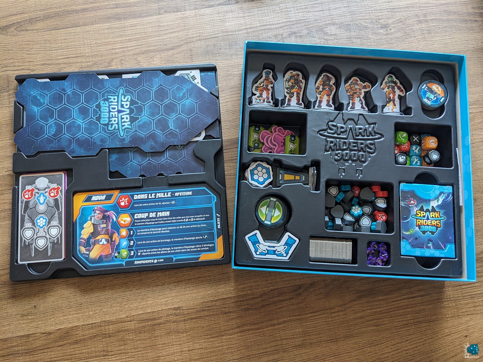 Avant de me plonger dans la rédaction de cette critique j’ai, comme à mon habitude, dressé une petite synthèse des points à aborder. Et le moins que l’on puisse dire, c’est que Spark Riders 3000 m’a inspiré. Beaucoup de choses à dire, en bien comme en moins bien ! Alors commençons par ce qui saute aux yeux dès l’ouverture de la boîte : l’édition, tout simplement remarquable.