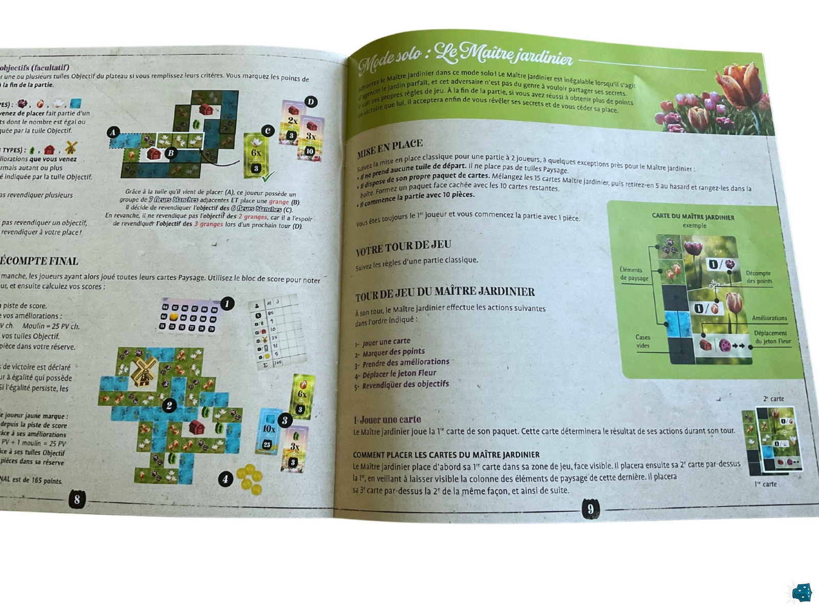 L’élément le plus déroutant pour nos cerveaux habitués à agencer l’espace de nos tuiles de la manière la plus ordonnée possible réside dans la valorisation des espaces vides. Plus qu’un gimmick rigolo, c’est une vraie stratégie qu’il faudra apprendre à maîtriser pour scorer et récupérer, grâce aux jardiniers, quelques pièces capables d’augmenter nos futurs choix de tuiles. C’est une vraie gymnastique de spatialisation, extrêmement stimulante et gratifiante lorsqu’on arrive enfin à poser un beau moulin au milieu de nos champs de tulipes.