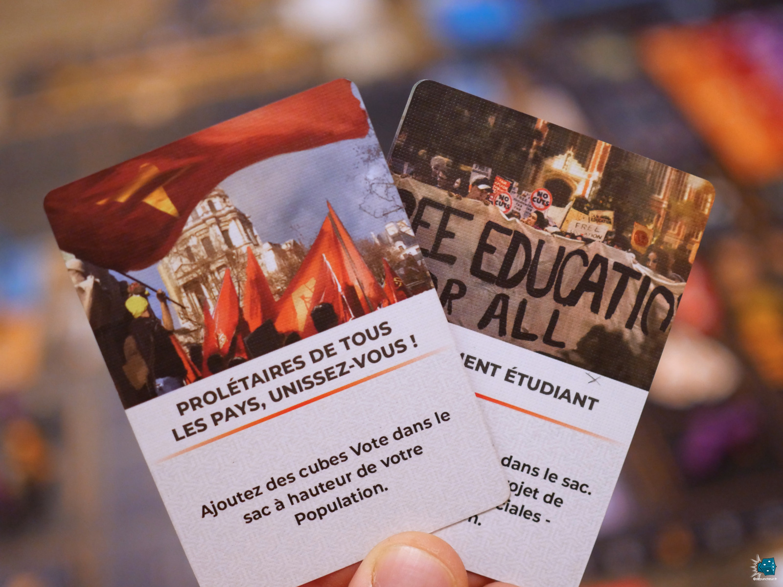 - Evènements Historiques qui permet de se replonger dans des évènements marquants des dernières décennies, modifiant légèrement les règles et la mise en place de chaque manche. Ça complexifie un peu le jeu sans pour autant l'alourdir trop et ça participe grandement à l'immersion politique !