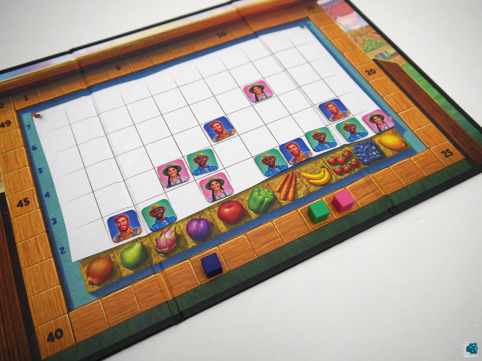 Cette course au positionnement est d'ailleurs décisive, car en fin de partie (quand toutes les caisses ont été placées), chaque fermier apportera un gain de points supplémentaires selon sa place dans la colonne. Et des points additionnels seront offerts aux trois joueurs qui auront le plus de fermiers sur le plateau !