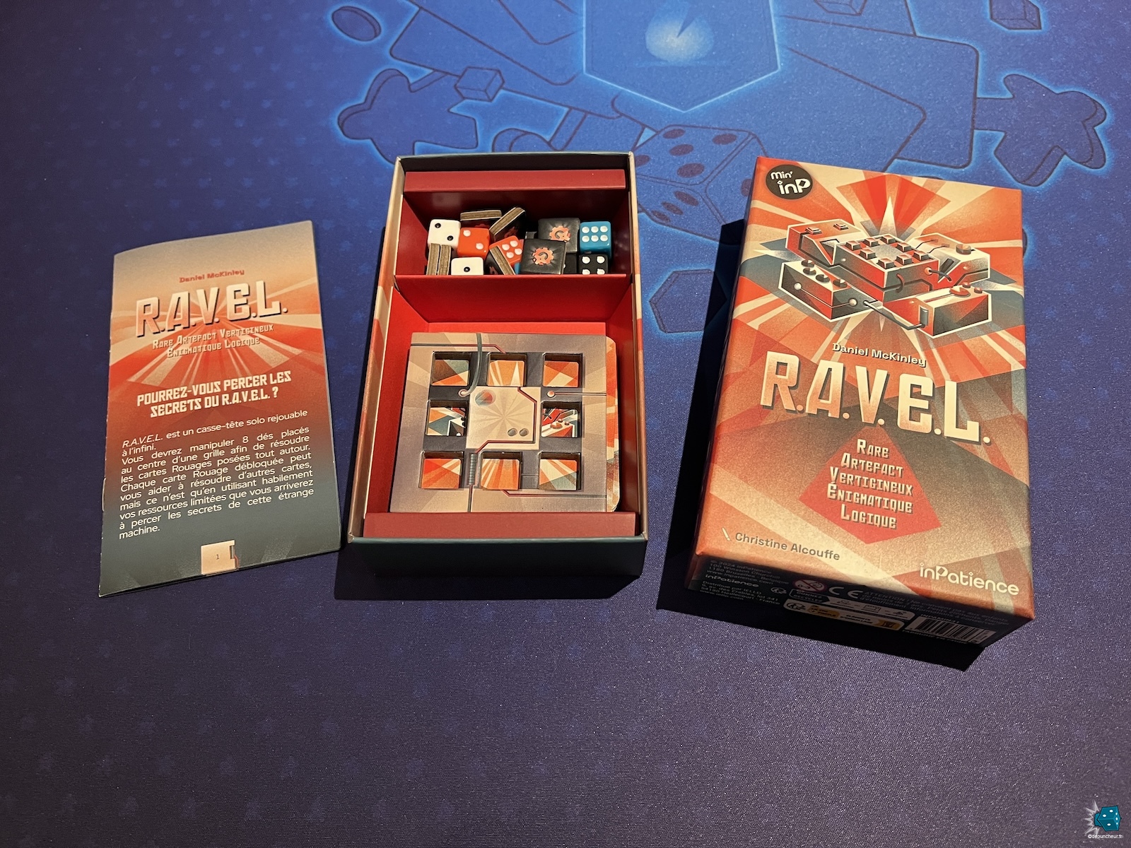 Sous ses airs de petit jeu tranquille, R.A.V.E.L. cache un puzzle addictif ! Si la mise en place se fait en un éclair, les tours sont tout aussi rapides. Mais ils cachent un dilemme permanent. En effet, dois-je utiliser maintenant deux jetons précieux pour changer la valeur d’un dé ou vaut-il mieux n’en utiliser qu’un seul pour intervertir deux dés et conserver ma marge de manœuvre pour plus tard ?