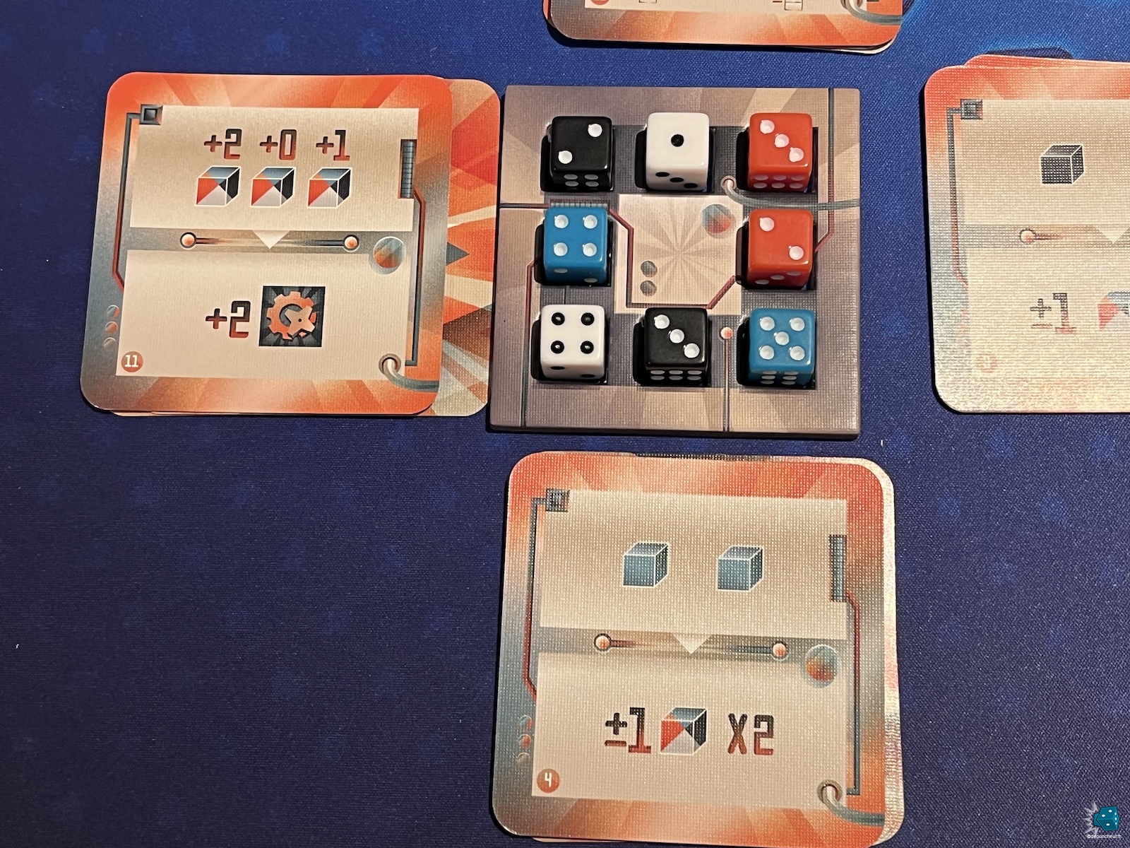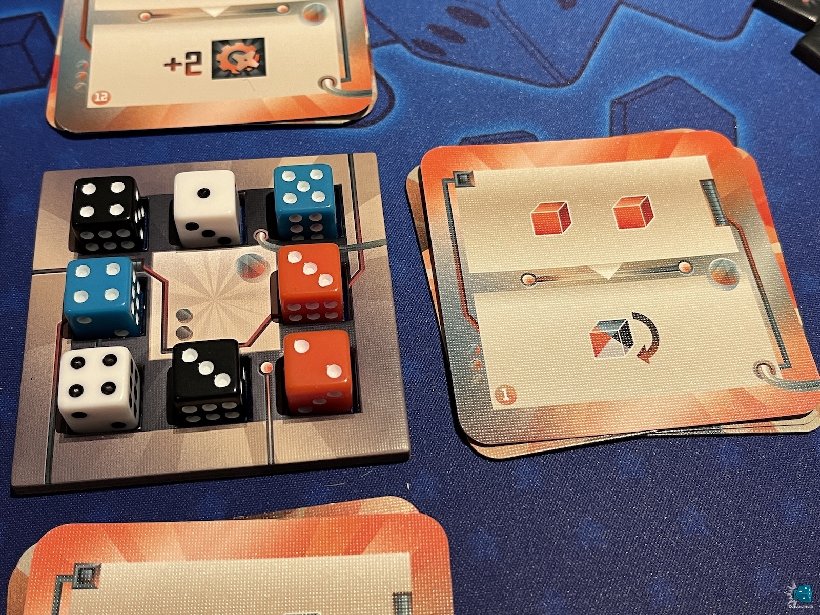 J’ai particulièrement apprécié ces petits moments de tension : on calcule, on hésite, on optimise. "Si je valide cette carte d'abord, j'obtiens ce bonus qui me permet de manipuler ce dé pour faire une suite sur l'autre côté...". Bref, on est dans l'optimisation pure, stimulante mais sans prise de tête.