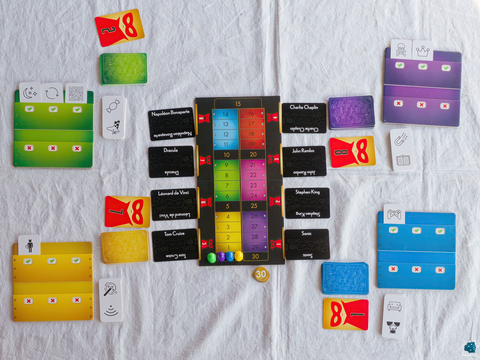 Chacun tente ensuite de deviner les identités secrètes des autres joueurs à partir de leurs pictos. Et on marque :